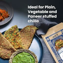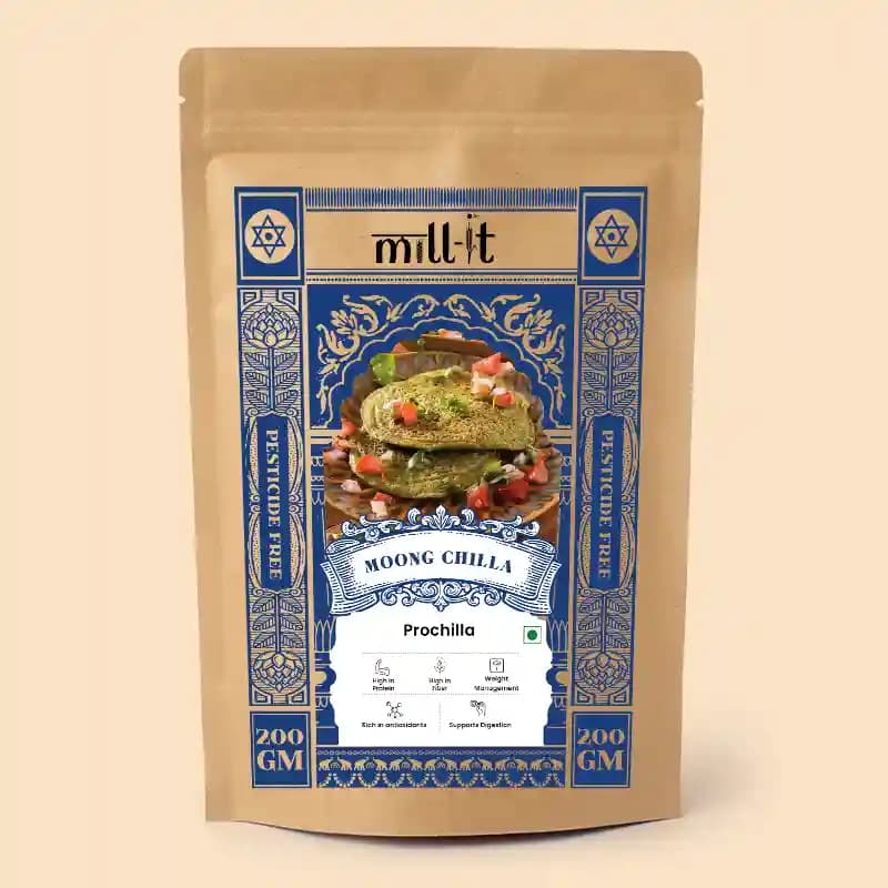 Looking for a healthy, protein-packed meal? Enjoy the goodness of Mill-it Moong Chilla Mix, made with a nutritious blend of moong dal and wholesome ingredients. Rich in fiber and essential minerals, it boosts energy and supports digestion, making it perfect for a light breakfast or snack. Just add water, cook, and enjoy a crispy, golden chilla that’s as nourishing as it is delicious.